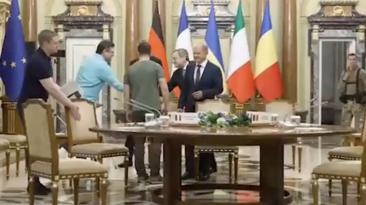 Ранее мы публиковали фото, как встречать Шольца, Драги и Макрона Зеленский вышел в футболке и кроссовках.