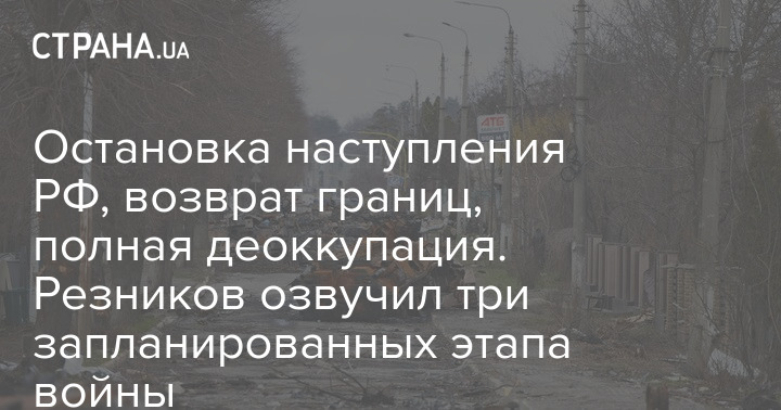 Министр обороны Алексей Резников назвал три необходимых этапа войны для ВСУ. По его словам, необходимо остановить наступление РФ, вернуть противника на позиции до 24 февраля, а после - деоккупировать территорию Украины полностью, включая Крым и Донбасс.
