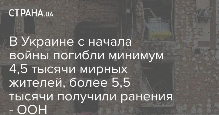 Из-за войны в Украине, которая продолжается уже четвертый месяц, предположительно, погибли не менее 4,5 тысячи мирных жителей. Еще 5 565 получили ранения.