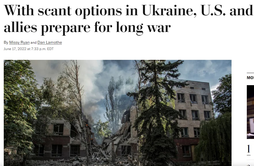 09.05 The Washington Post вышла со статьей о том, что Запад готовится к долгой войне в Украине.