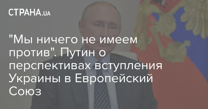 Президент России Владимир Путин прокомментировал возможное вступление Украины в Евросоюз. По словам Путина, Россия "ничего не имеет против" вступления Украины в ЕС, так как он не является военный блоком.