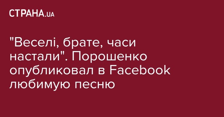 "Веселі, брате, часи настали". Порошенко опубликовал в Facebook любимую песню