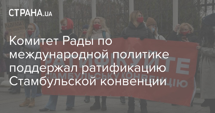 Комитет Верховной Рады по международной политике поддержал ратификацию Конвенции Совета Европы о предотвращении насилия в отношении женщин и домашнего насилия и борьбе с этими явлениями - так называемую Стамбульскую конвенцию.
