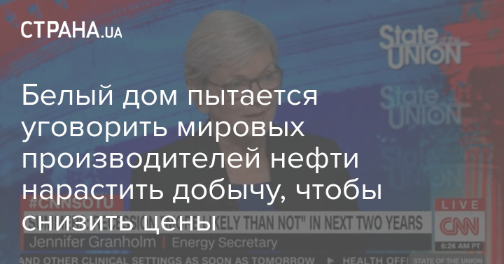 "Он (президент США Джо Байден - Ред.) попросил всех поставщиков по всему миру увеличить производство. Это включает ОПЕК, это включает наших внутренних производителей нефти и газа", - заявила Грэнхолм.