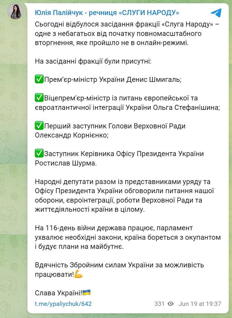 "Слуги народа" обсудили вопросы обороны, евроинтеграции, работы парламента и жизнедеятельности страны в целом.