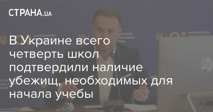По состоянию на 20 июня в 25% украинских школ подтверждено наличие укрытий.