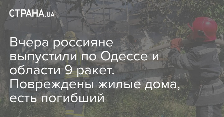 Вчера россияне выпустили по Одессе и области 9 ракет. Повреждены жилые дома, есть погибший