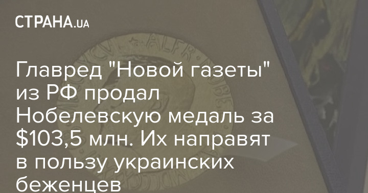 Главред "Новой газеты" из РФ продал Нобелевскую медаль за $103,5 млн. Их направят в пользу украинских беженцев