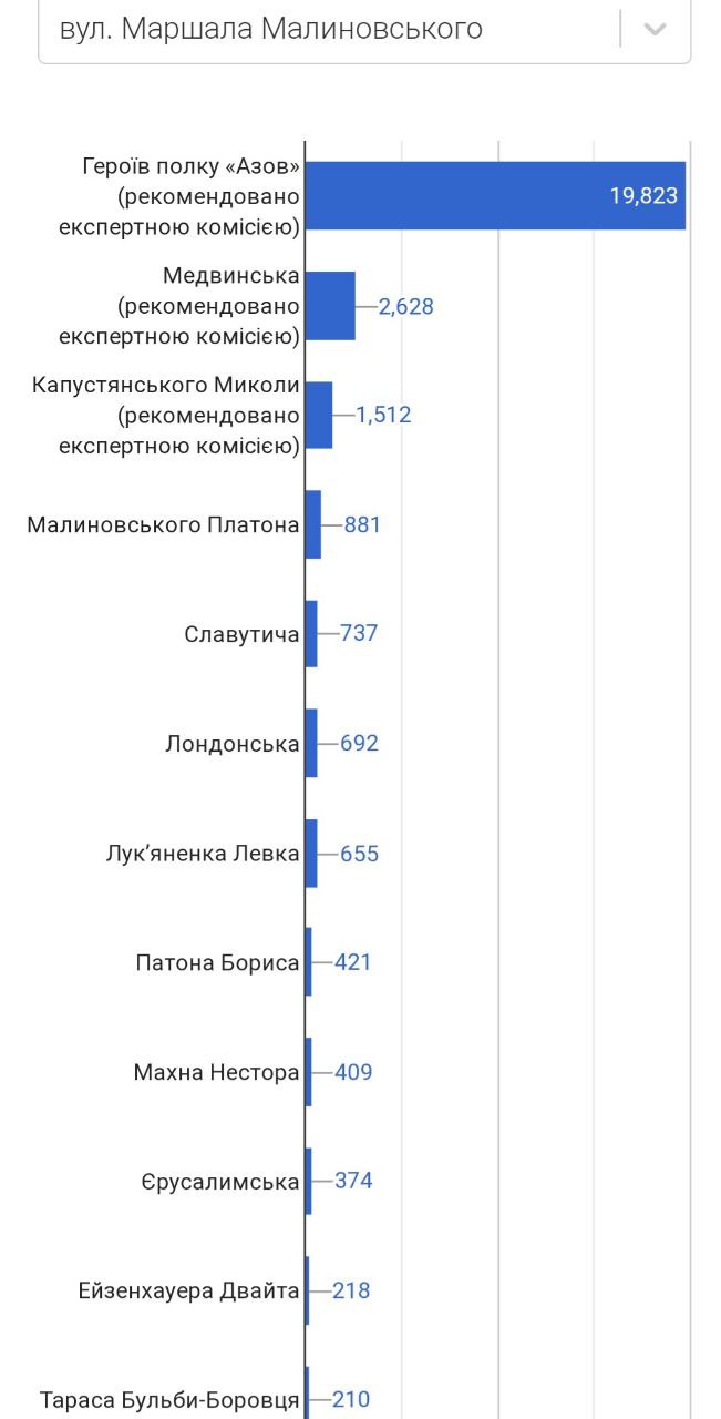 Улица Маршала Малиновского на Оболони - станет улицей Героев полка "Азов", как и рекомендовала комиссия экспертов. Мэрия уже подтвердила, что поставит это название на голосование.
