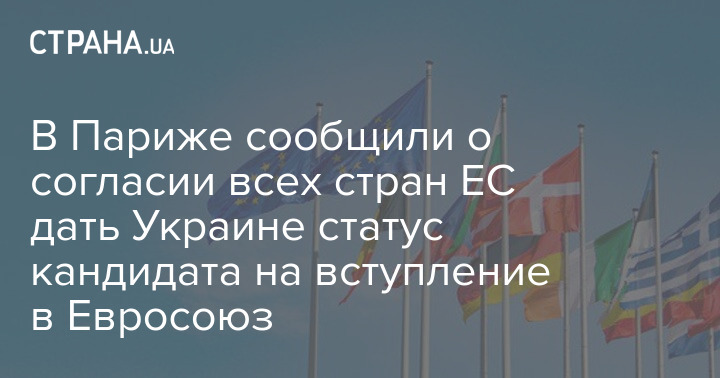 В Париже сообщили о согласии всех стран ЕС дать Украине статус кандидата на вступление в Евросоюз