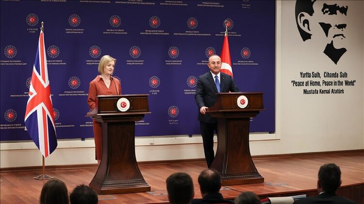 Министр иностранных дел Мевлют Чавушоглу на встрече с главой МИД Британии Лиз Трасс заявил, что не позволит доставлять в страну похищенное РФ зерно, однако если в Стамбуле будет достигнуто соглашение по ситуации с украинским зерном, то будут созданы центр управления и "безопасная зона за пределами территориальных вод Украины".