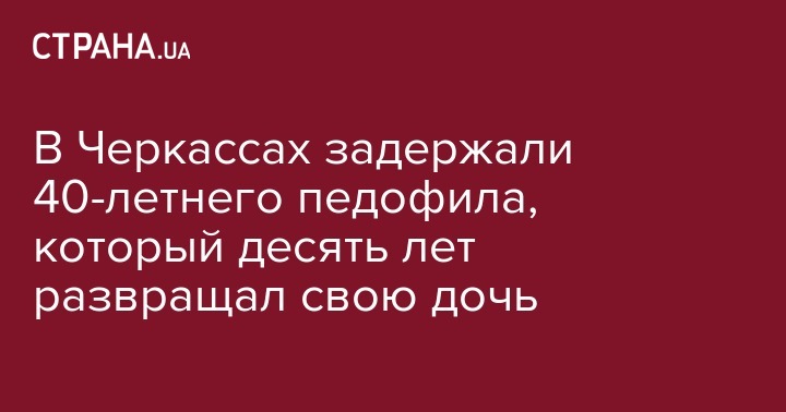 Во вторник, 8 ноября правоохранители из полиции задержали в Черкассах 40-летнего педофила, который на протяжении десяти лет вступал в интимные отношения с собственной дочерью, передает УНН со ссылкой на полицию.