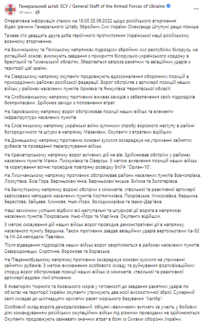 Война в Украине продолжается уже 122-й день. Мы следим за главными новостями 25 июня в обновляемом материале.
