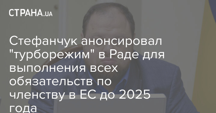 Председатель Верховной Рады Руслан Стефанчук заявил, что парламент будет работать в "турборежиме", чтобы выполнить все обязательства для членства в Евросоюзе к 2025 году.