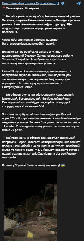 Российские войска вновь ударили по Харькову. Фото: Телеграм