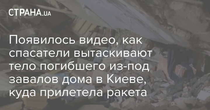 Появилось видео, как спасатели вытаскивают тело погибшего из-под завалов дома в Киеве, куда прилетела ракета