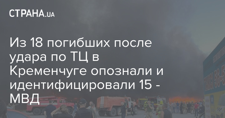 15 человек из 36, которые считались пропавшими без вести после ракетного удара по ТРЦ в Кременчуге, найдены и идентифицированы.
