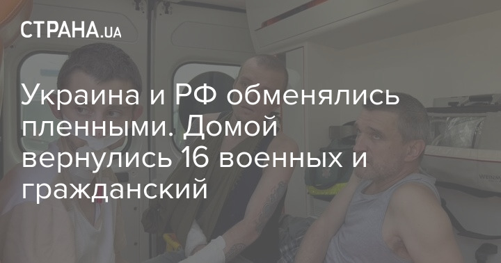 Сегодня прошёл новый обмен пленными. 17 пленных украинских военных обменяли на 15 пленных российских солдат. Из освобождённых украинцев два офицера и 14 солдат, а также один гражданский, захваченный Россией в плен.