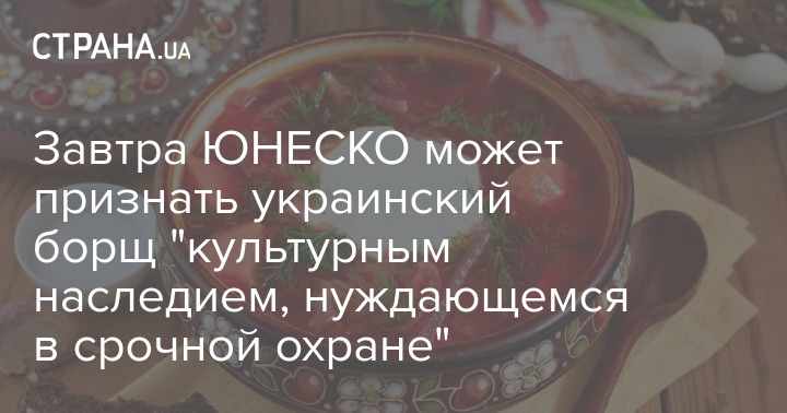 Завтра, 1 июля, украинский борщ может быть признан ЮНЕСКО "нематериальным культурным наследием, нуждающемся в срочной охране".