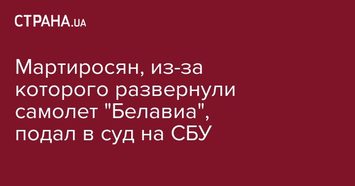 Гражданин Армении Армен Мартиросян подал иск в украинский суд с просьбой признать незаконными действия СБУ, из-за которых в воздухе развернули самолет "Белавиа". Об этом сообщают "Украинские Новости".