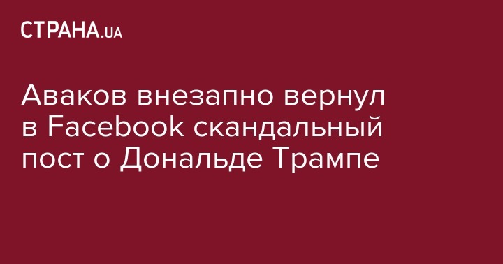 Министр внутренних дел Украины Арсен Аваков, после шквальной критики со стороны общественности и нардепов, вернул на свою страницу в социальной сети Facebook некомплиментарный пост о победителей выборов в США Дональде Трампе.
