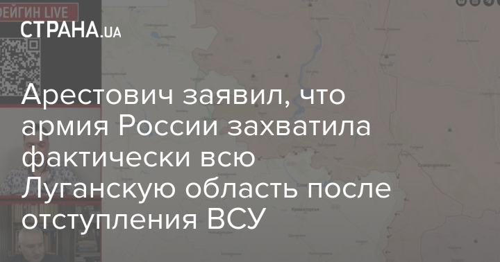 Также Арестович сообщил, что в Луганской области осталась небольшая "серая зона", которая еще не контролируется россиянами, но в целом "можно констатировать, что Луганская область у них".