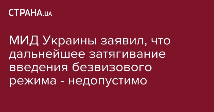 Министерство иностранных дел  обнародовало заявление про недопустимость дальнейшего затягивания Европейским Союзом введения безвизового режима с Украиной. Об этом говорится в сообщении пресс-службы МИДа.