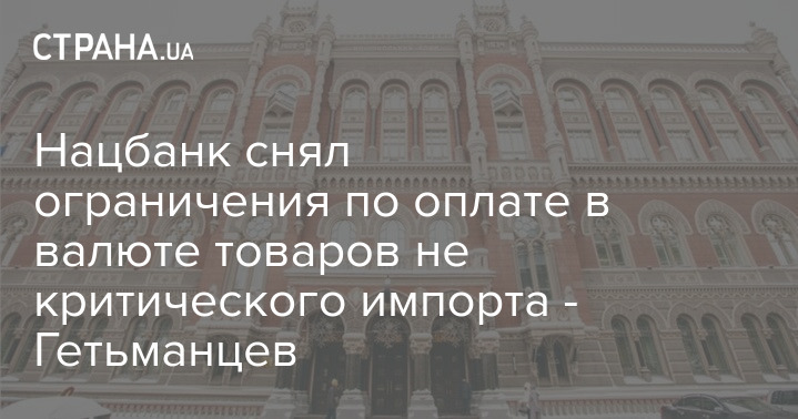 Нацбанк снял ограничения по оплате в валюте товаров не критического импорта - Гетьманцев