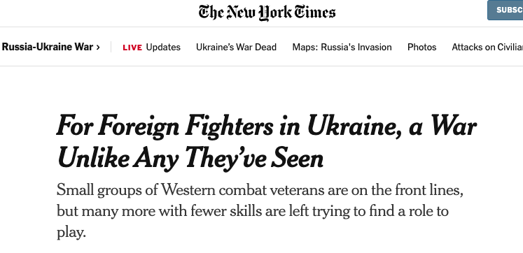 "Двое новобранцев на передовой рассказали о встречах на конспиративных квартирах с американскими и скандинавскими членами организации сторонников превосходства белой расы "Арийское Братство", которые пытались самостоятельно попасть на фронт", - пишет New York Times.