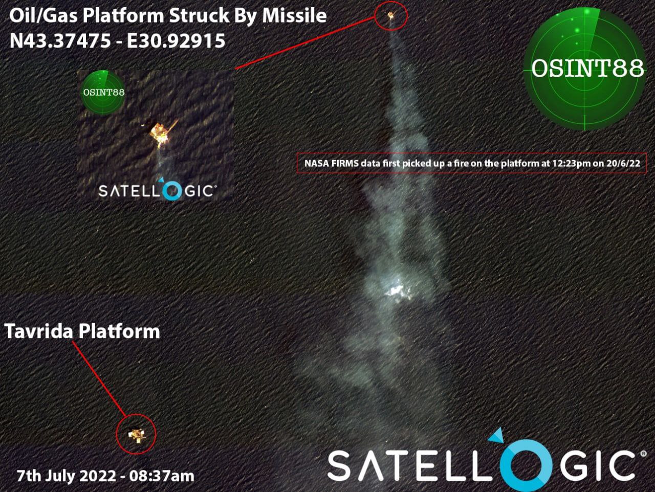 В Черном море продолжают гореть буровые вышки, по которым ВСУ наносили удар. Об этом сообщают военные аналитики со ссылкой на спутниковые снимки.