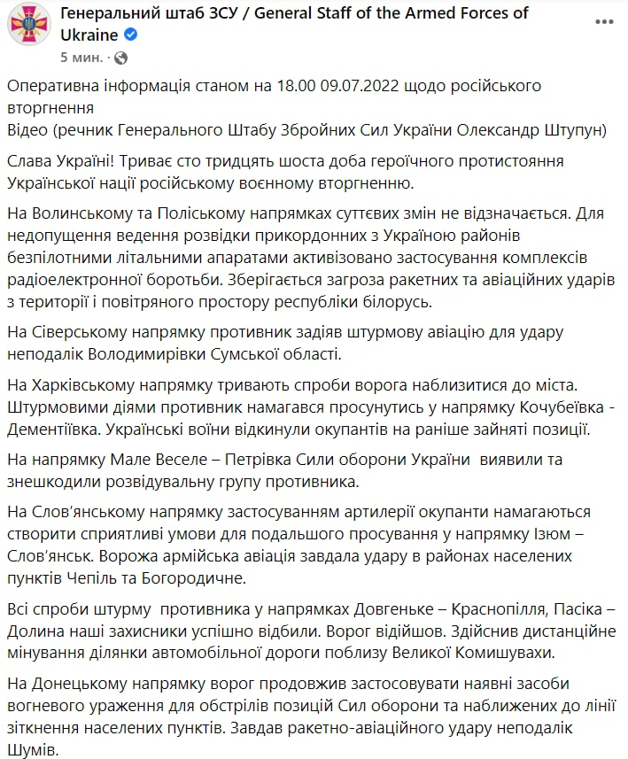 Война в Украине продолжается уже 136-й день. "Страна" следит за происходящим 9 июля в обновляемом материале