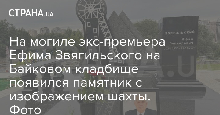 На могиле экс-премьера Ефима Звягильского на Байковом кладбище появился памятник с изображением шахты. Фото