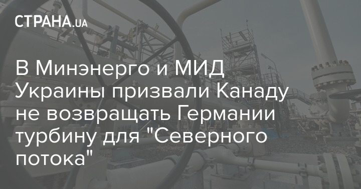 Министерство энергетики и министерство иностранных дел Украины призвали Канаду отменить принятое решение вернуть в Германию отремонтированные компанией Siemens Canada турбины для "Северного потока-1".