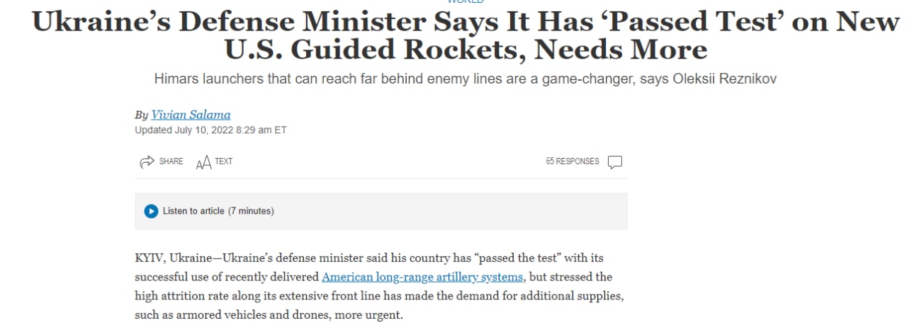 Резников рассказал о потерях украинской армии и призвал Запад прислать дальнобойные ракеты к "Хаймарсам" - WSJ