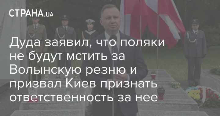 Президент Польши Анджей Дуда во время памятных мероприятий в Варшаве, посвященных годовщине Волынской резни, заявил, что поляки не будут мстить украинцам за те события, признанные в Польше геноцидом. Однако призвал Киев признать сам факт Волынской резни.
