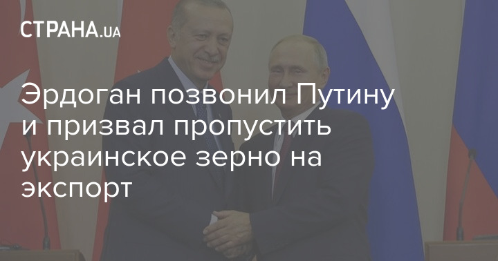 "Эрдоган заявил, что пора действовать по плану ООН по созданию безопасных коридоров для экспорта зерна в Черном море", - говорится в сообщении.