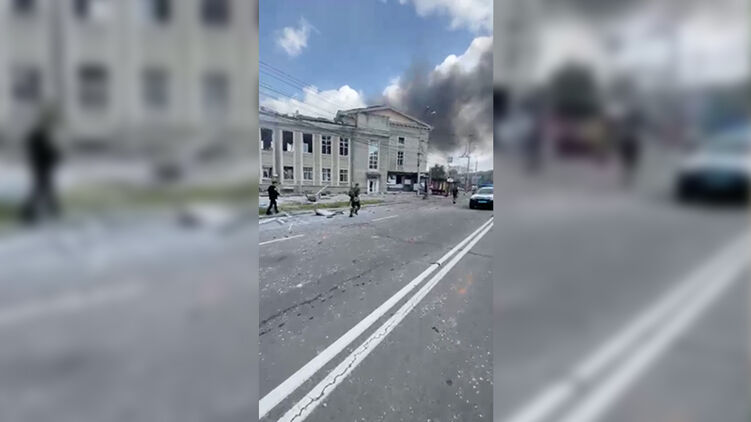 Россия нанесла удар по самому центру города, горят авто, повреждены офисы, жилые дома и Дом офицеров. Скриншот из видео