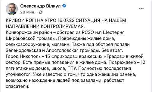 Об этом сообщил глава Криворожской военной администрации Александр Вилкул.
