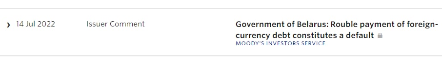Минск, как и Москва, решил оплатить проценты по облигациям (евробондам) не в долларах, а в рублях. Беларусь провела такую выплату еще в конце июня на счета собственного банка. Но западные банки ее не признали. Срок оплаты евробондов истекал 13 июля. То есть со вчерашнего дня Минск в глазах кредиторов объявил дефолт.
