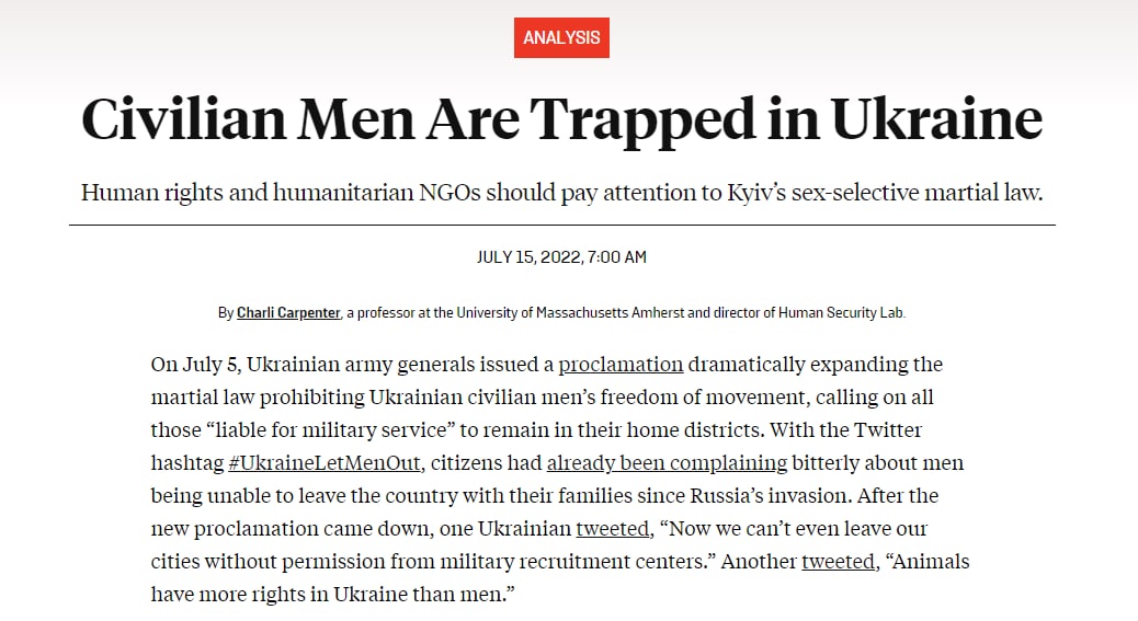 09.11 Издание Foreign Policy (США) вышло с критикой мобилизации в Украине - в части запрета на выезд мужчин.