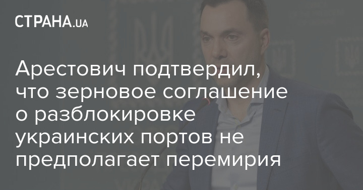 Советник главы Офиса президента Алексей Арестович заявил, что соглашение между Украиной, Россией и Турцией в Стамбуле о разблокировке украинских портов для вывоза зерна не предполагает перемирия.
