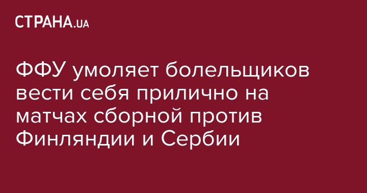 Федерация футбола Украины (ФФУ), в преддверии важных матчей национальной сборной против Финляндии и Сербии, обратилась к болельщикам с просьбой вести себя на стадионах цивилизованно.