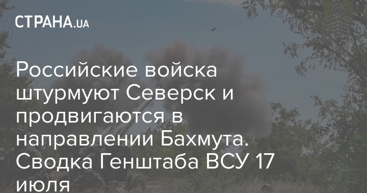 Российские войска штурмуют Северск и продвигаются в направлении Бахмута. Сводка Генштаба ВСУ 17 июля