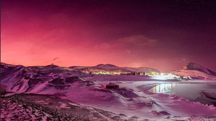 Появились фото розового неба в Антарктиде. Названа причина аномального явления