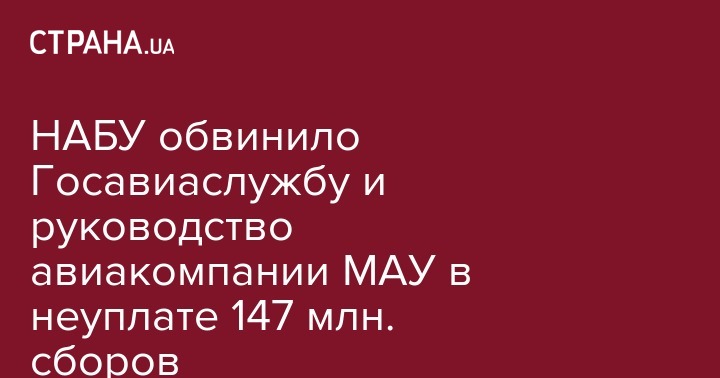 Расследование НАБУ показало, что в 2014-2015 годах руководство МАУ в сговоре с должностными лицами Госавиаслужбы не перечисляло средства за перевезенных пассажиров и грузы в Госфонд финансирования общегосударственных расходов на авиационную деятельность.