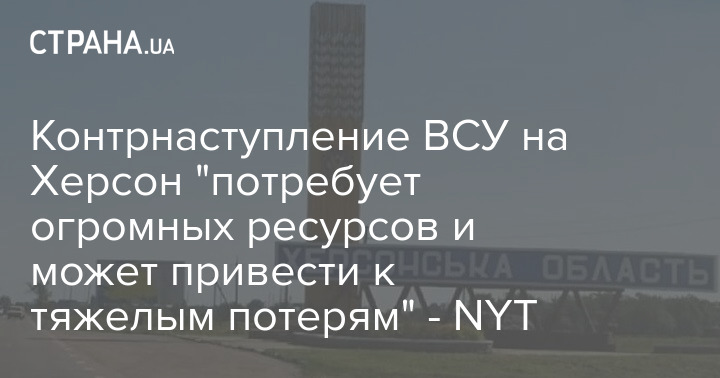 Контрнаступление ВСУ на Херсон "потребует огромных ресурсов и может привести к тяжелым потерям" - NYT