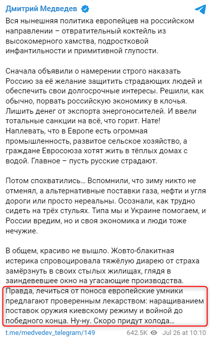 Очевидно, что все это - следствие войны и масштабных санкций, введенных Евросоюзом. Французская газета Le Monde со ссылкой на неназванного дипломата пишет, что ЕС "подошёл к концу" по введению ограничительных мер против РФ.