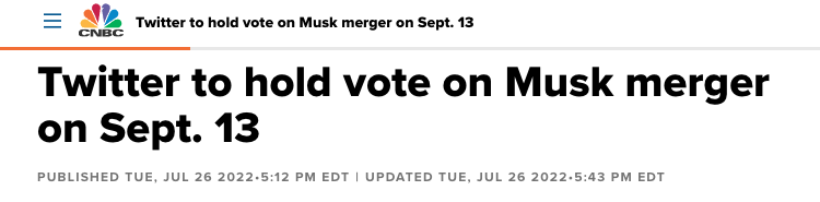 Акционеры Twitter соберутся на специальное заседание 13 сентября, чтобы провести голосование касательно продажи социальной сети Илону Маску за 44 млрд долларов.