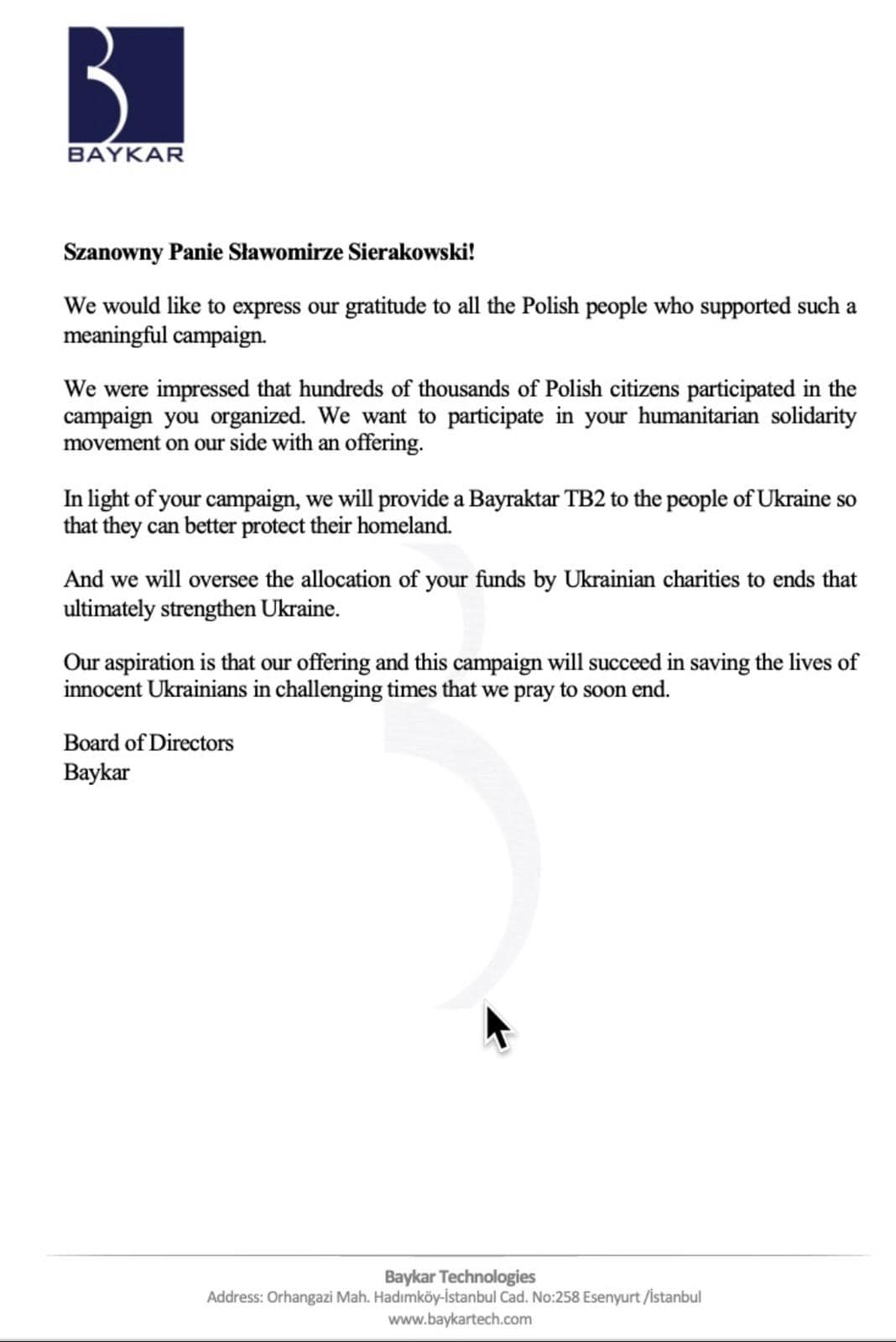 Представитель СМИ обнародовал официальное письмо от турецкой компании, в котором говорилось о том, что они поражены участием сотен тысяч поляков в этой акции.