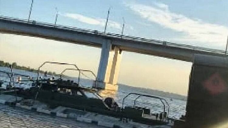В сети публикуют фото понтонной переправы, которую россияне возвели через Днепр прямо возле Антоновского моста.